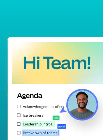 Try Canva for Teams, the all-in-one solution for teams of all sizes to create and collaborate together.